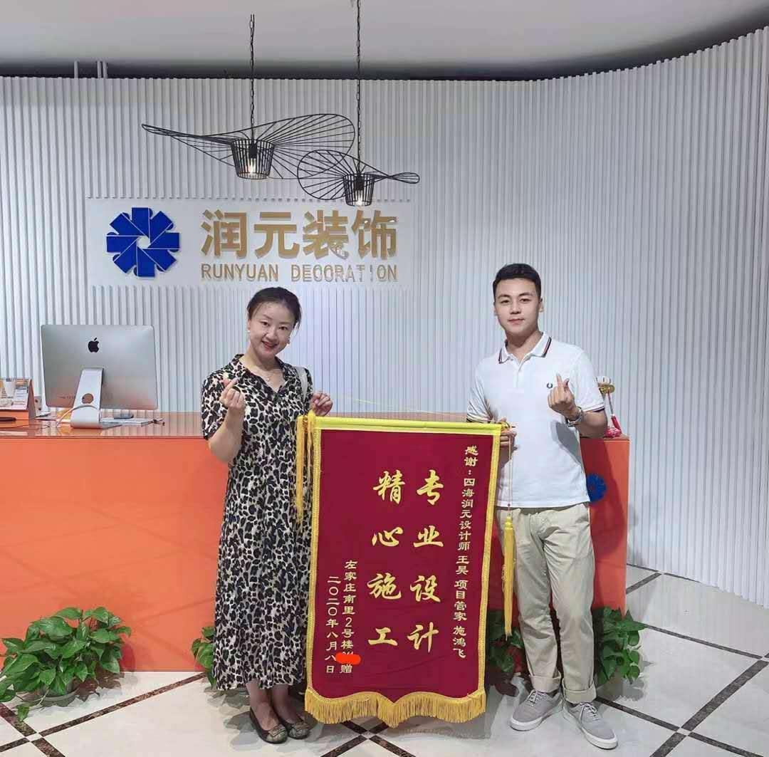 2020年8月8日,朝陽區(qū)左家莊業(yè)主來到 潤(rùn)元裝飾 帶來了一幅繡有“專業(yè)設(shè)計(jì),精心施工”的錦旗,對(duì)潤(rùn)元裝飾設(shè)計(jì)師王昊,工程部項(xiàng)目經(jīng)理史鴻飛及施工人員的認(rèn)真負(fù)責(zé)、