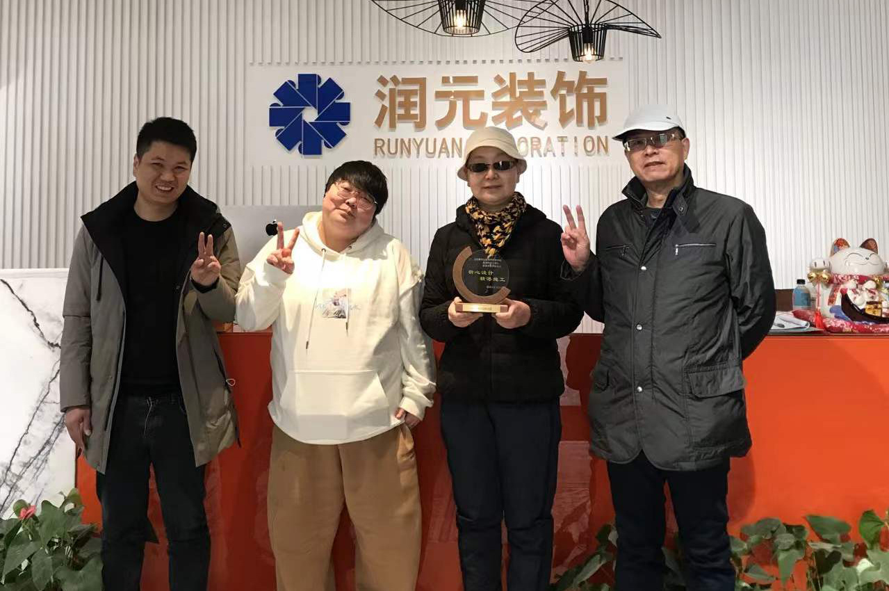 12月19日上午,酈城業(yè)主趙慶平夫婦來到潤(rùn)元裝飾,將一座“精心設(shè)計(jì) 精湛施工”的水晶獎(jiǎng)杯送到設(shè)計(jì)師賈向楠以及工長(zhǎng)金榮祥手上,以表達(dá)對(duì)潤(rùn)元設(shè)計(jì)師,施工團(tuán)隊(duì)以及