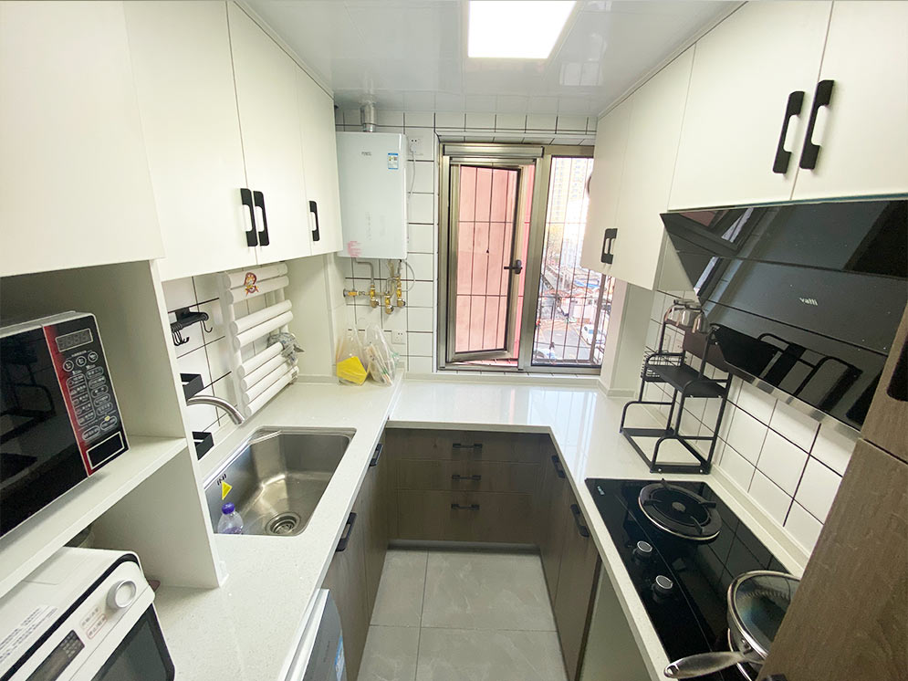 4平米的廚房,平時(shí)洗菜刷碗,炒菜做飯也有多處不方便,并且儲(chǔ)物空間也很少,現(xiàn)在需要重新科學(xué)規(guī)劃廚房操作空間以及增加儲(chǔ)物。