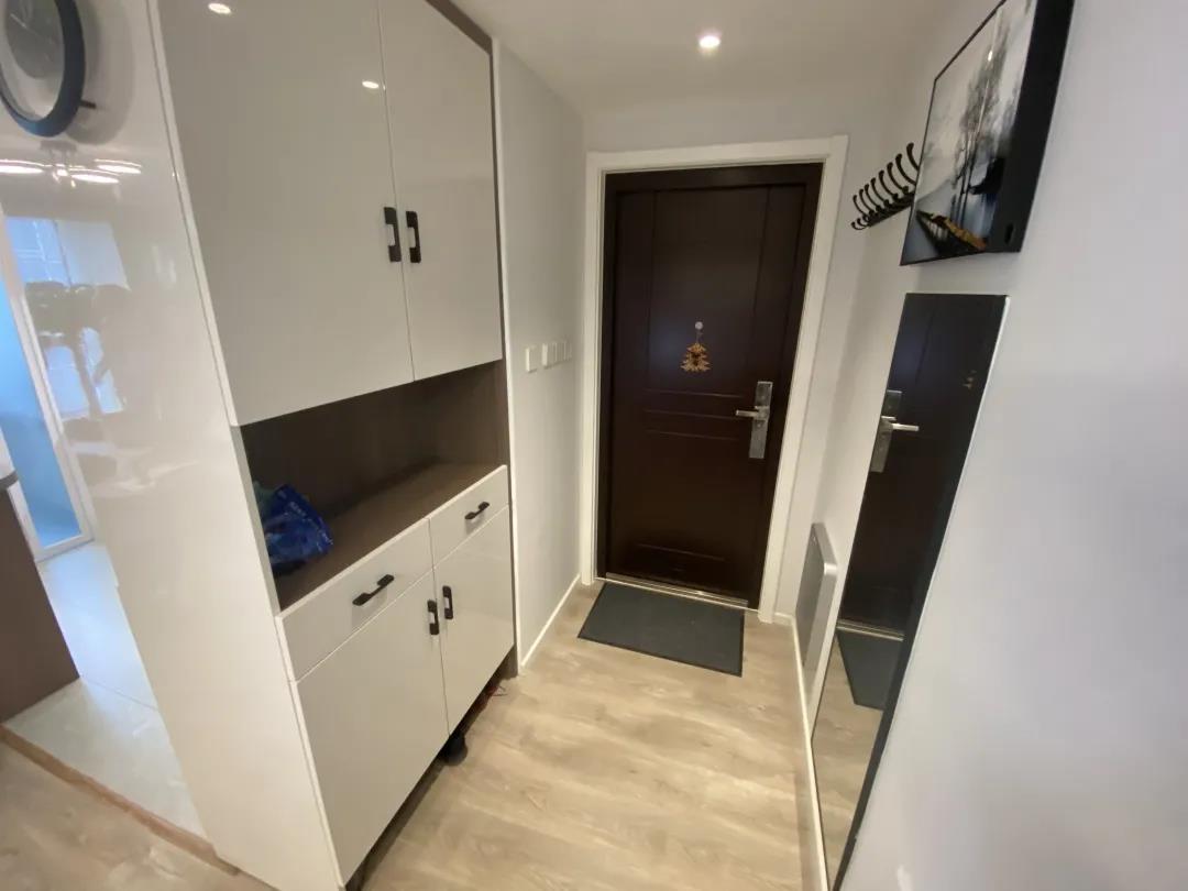 任先生家的門廳只有2平米,是個狹長形,改造前只在進(jìn)門左手的位置擺放了一個簡易鞋柜,再沒有任何儲物空間,而且放了鞋柜之后,進(jìn)出都只能側(cè)著身。再有進(jìn)門右邊就是廚房,還影響了這個空間的采光。希望設(shè)計師能合理規(guī)劃門廳,既有充足的儲物,又能解決采光問題,還能讓老兩口今出門有地方坐著換鞋。