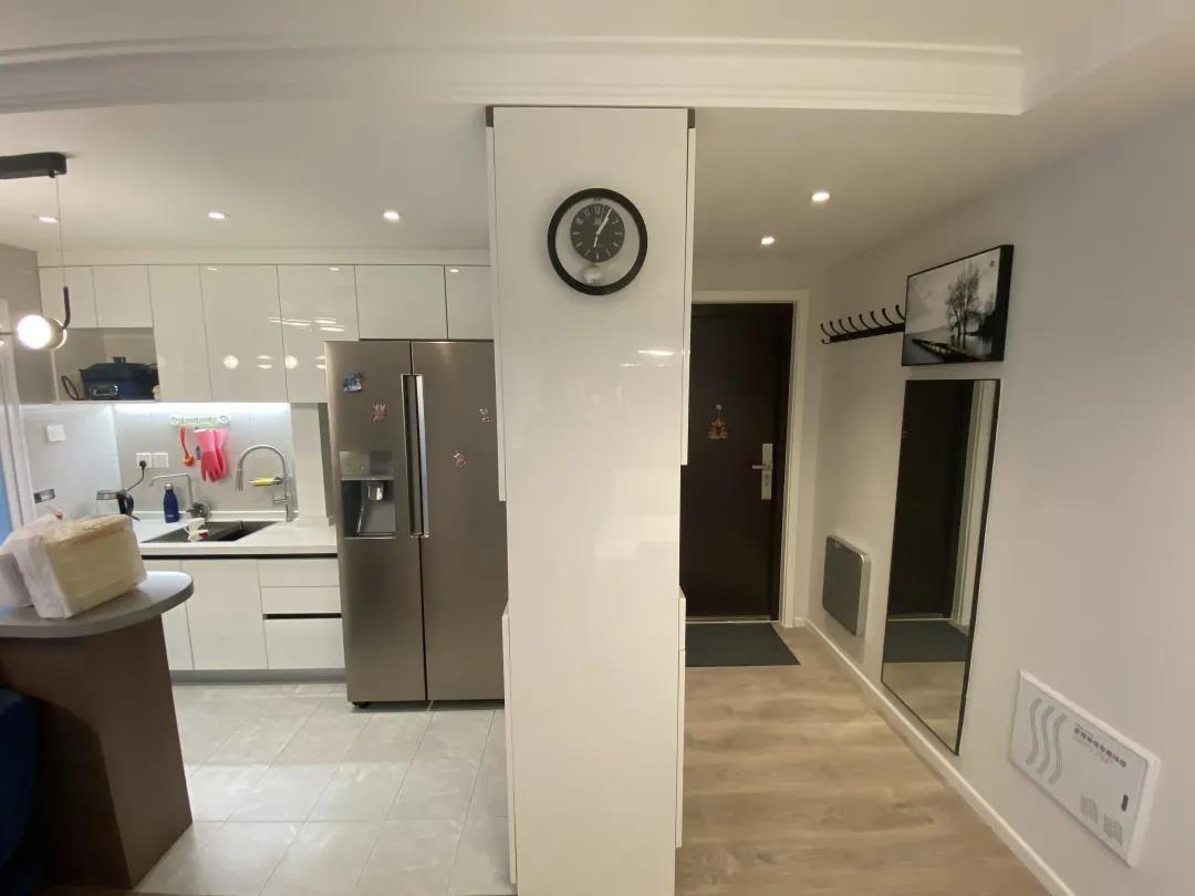 設(shè)計師拆除了廚房和客廳的這堵輕體隔斷墻,將原本封閉的廚房改成了開放式的,再重新規(guī)劃。