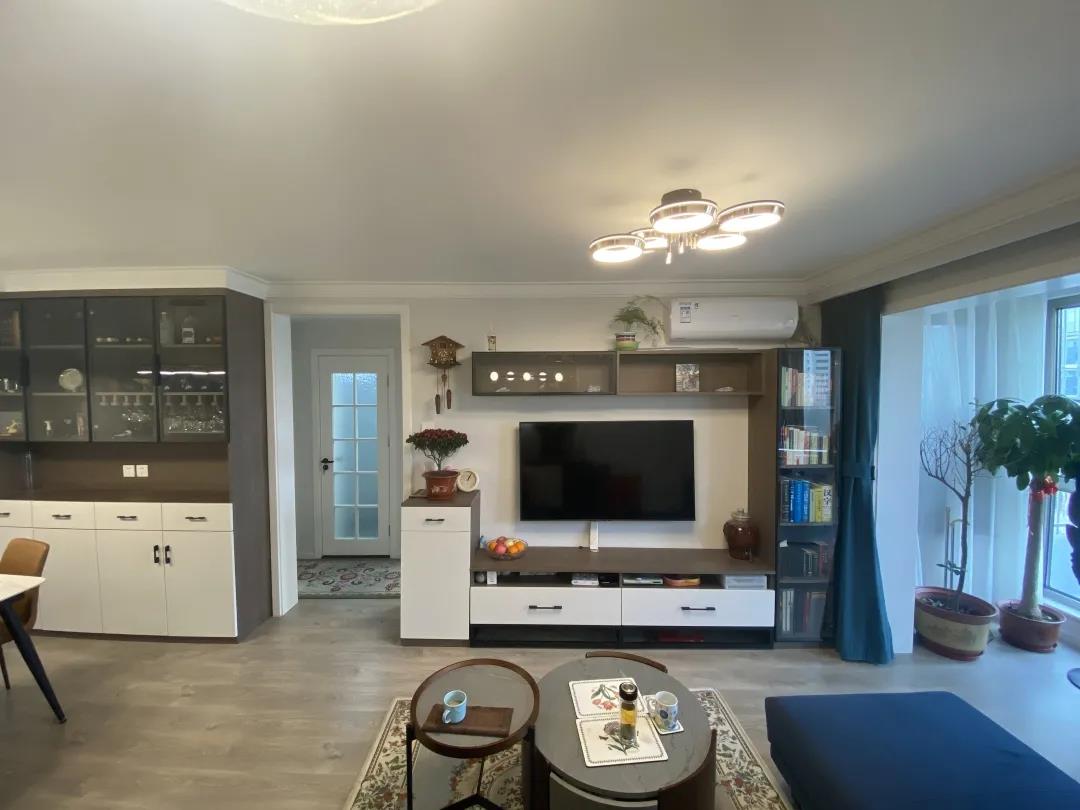 而客廳區(qū)域,用定制電視柜拉伸了整體的空間感,茶幾沙發(fā)依次擺放,形成一種環(huán)抱的感覺,既溫馨又實(shí)用。