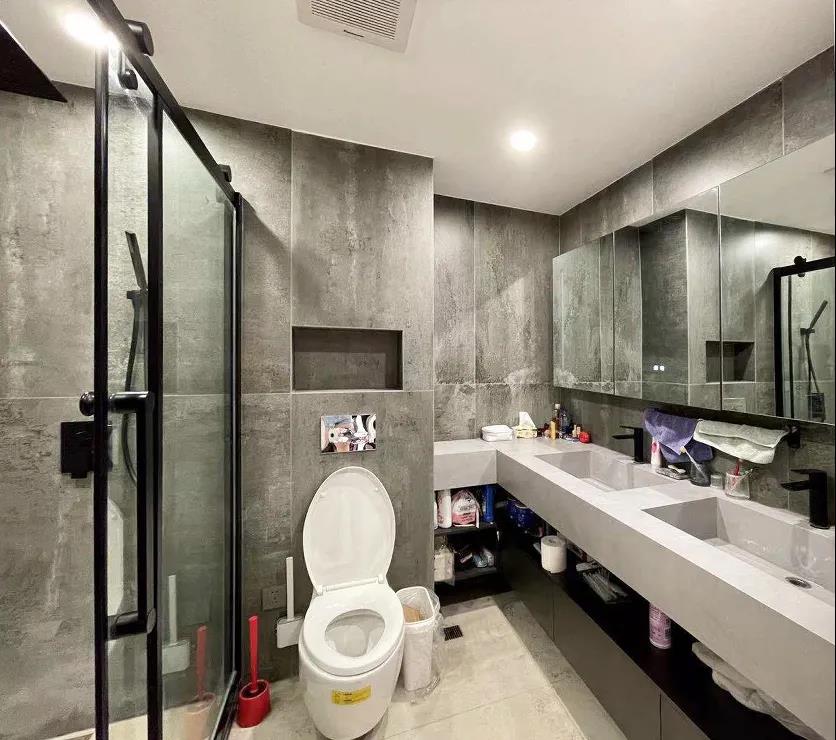 主衛(wèi)經(jīng)過設(shè)計師的改造,擁有了超大淋浴、雙臺盆、壁掛式馬桶,以及凹龕的設(shè)計使整體空間美觀實用。