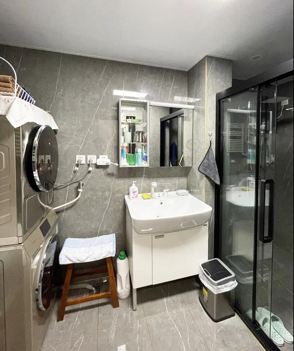 原次衛(wèi)面積3.5平米,設(shè)計(jì)師借用了相鄰儲(chǔ)物間的空間,將面積擴(kuò)大到現(xiàn)在的4.8平米,再將衛(wèi)生間重新布局,實(shí)現(xiàn)了干濕分離。