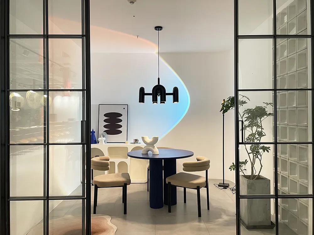 另外,還打造了一處私密的洽談空間,這里應(yīng)用到家庭空間可以當(dāng)做餐區(qū)。