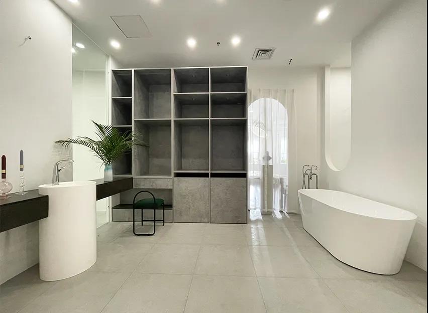 潔具區(qū)域也入駐了新的品牌,更多的款式,并且加3000元,可將衛(wèi)生間標配的成品浴室柜升級成定制浴室柜。