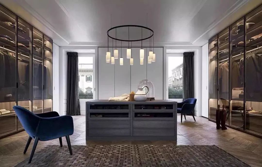 衣帽間本身放的東西就比較多,抽屜這種儲物形式方便又實用,比如存放女士的項鏈、戒指、珠寶等,男士的手表、領(lǐng)帶、領(lǐng)扣等。