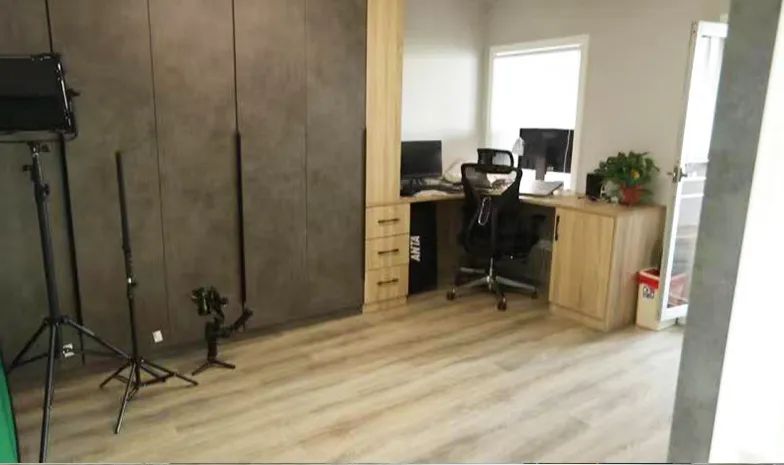 結(jié)合男業(yè)主的工作情況,工作間既要存放一些大型設(shè)備,還需要一定面積的空間進(jìn)行拍攝工作,設(shè)計(jì)師將外面的露臺(tái)納入到工作間,既擴(kuò)大了空間又將露臺(tái)合理的利用起來,通頂儲(chǔ)物柜,既可以存放設(shè)備又補(bǔ)充了儲(chǔ)物。