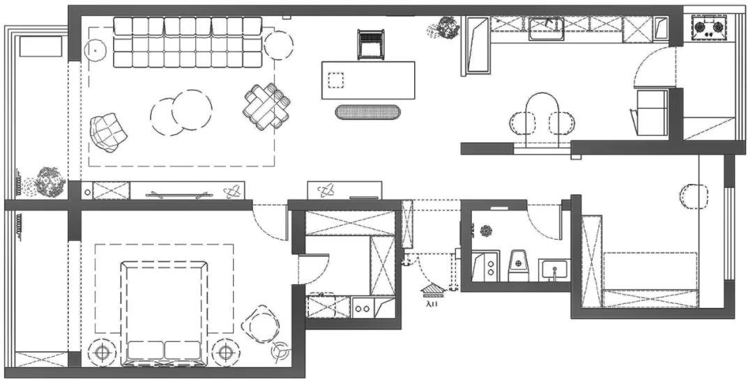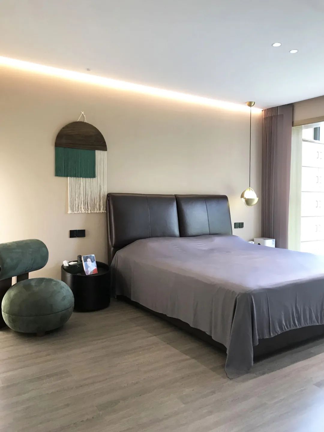 設(shè)計師為業(yè)主保留了部分原有家具重新利用,點線光源結(jié)合更顯溫馨、