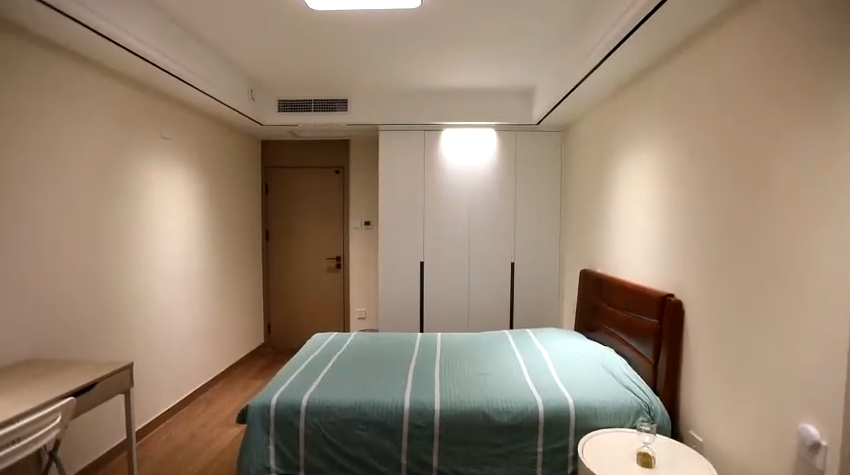 因?yàn)槭且患胰送?,結(jié)合業(yè)主實(shí)際情況,設(shè)計(jì)師將客廳改造為了老兩口的臥室,利用潤元定制家具打造了通頂衣柜以及電視柜,主臥陽臺(tái)也打造了定制柜來滿足對(duì)儲(chǔ)物空間的需求。