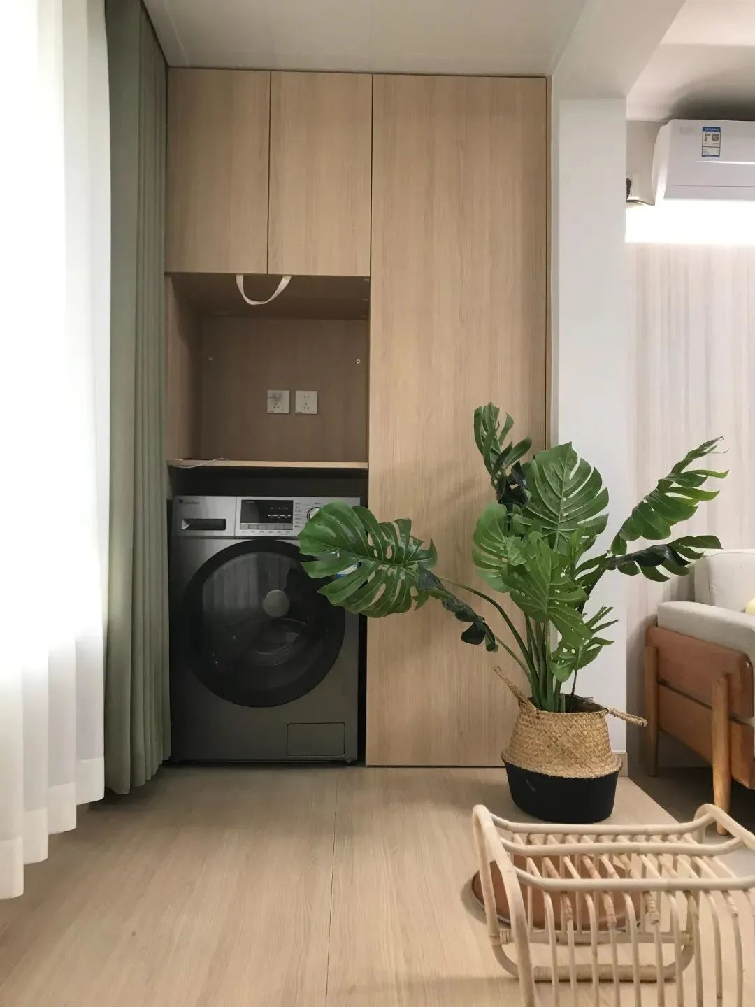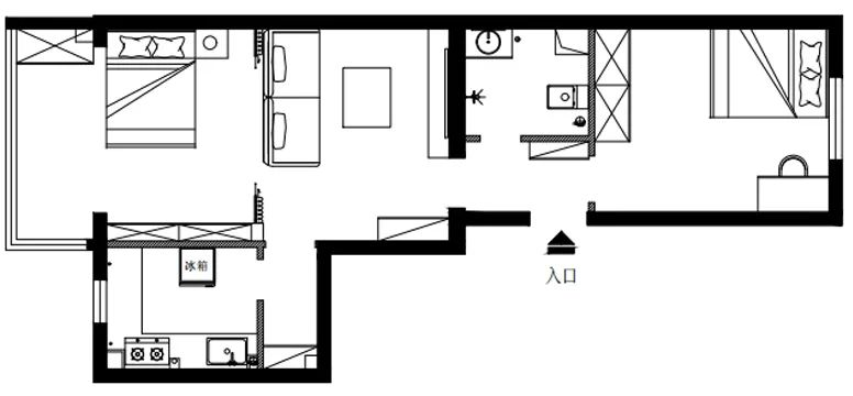 一個人居住的情況下,至少得8平米的空間,但因為面積的原因設計師把這個空間已經(jīng)壓縮到最小了。