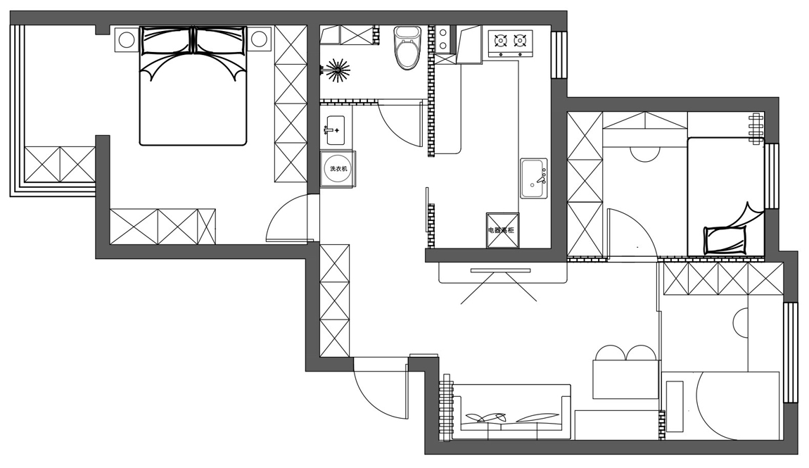 鄒先生家的這套房子,使用面積59平米,兩室一廳一廚一衛(wèi),未來鄒先生一家四口生活在這里。由于兩個(gè)孩子越來越大,家里原來的布局已經(jīng)無法滿足生活需求,所以必須的改。