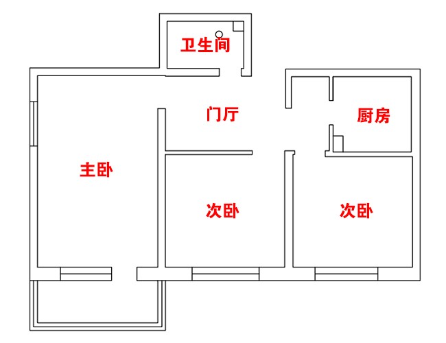衛(wèi)生間有2平米,用起來(lái)不是很方便,一是馬桶正對(duì)著門,比較尷尬。二是洗手盆在最里面,使用不方便。三是洗衣機(jī)放不下。