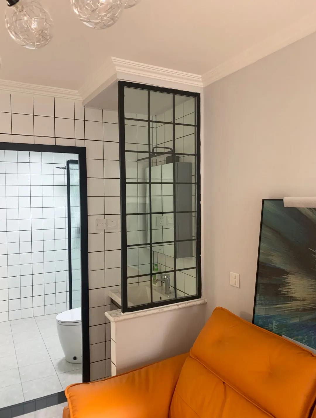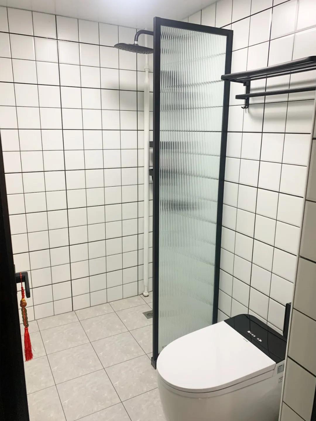 4、提高衛(wèi)生間私密性,實(shí)現(xiàn)干濕分區(qū)衛(wèi)生間面積3平米,內(nèi)部格局十分不合理,淋浴區(qū)正對著門,洗衣機(jī)就在淋浴區(qū)旁邊,并且沒有任何儲物空間。