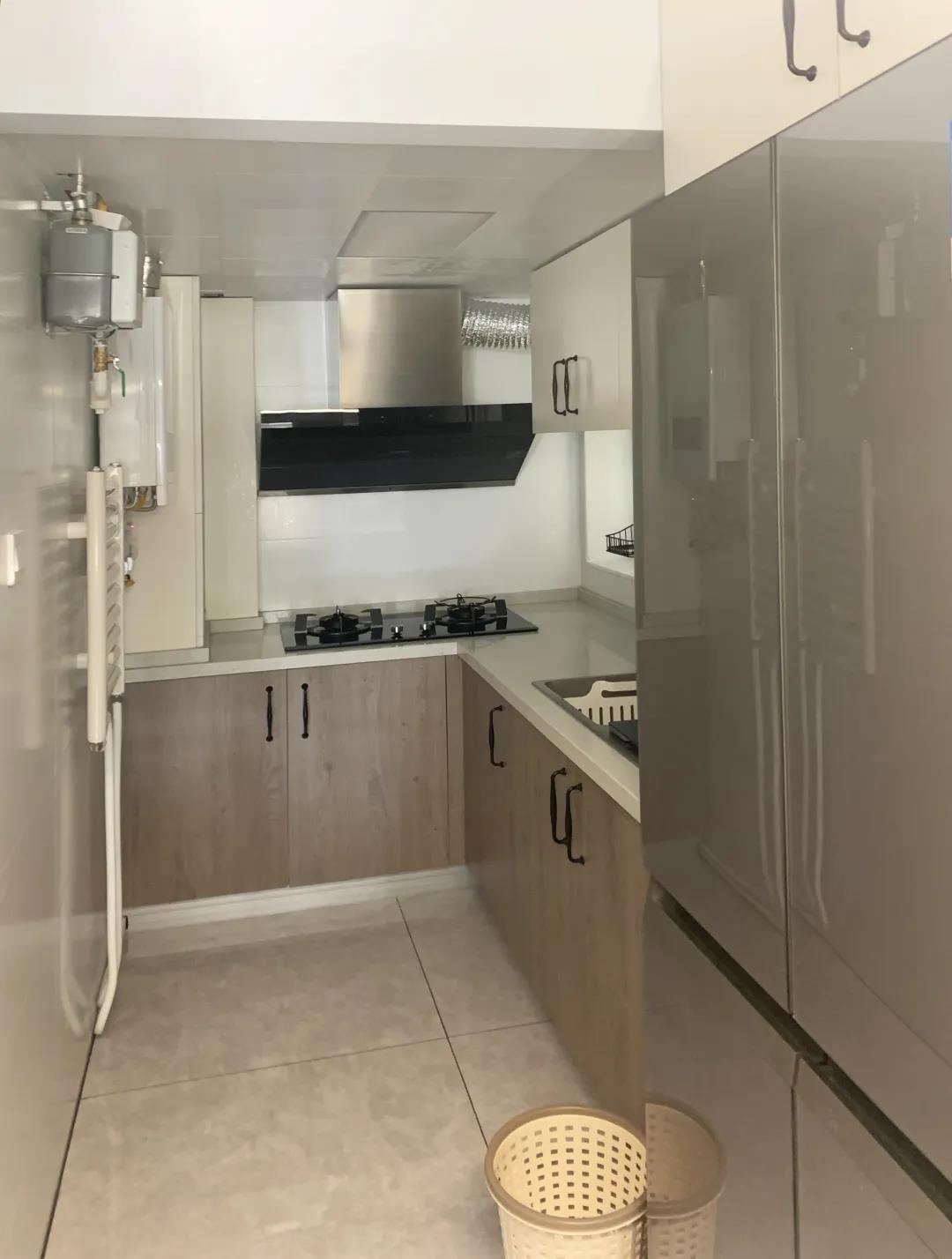 3、改善廚房布局,合理利用空間廚房空間5平米,是個狹長型,空間窄小,采光也不好,平時做飯都需要開燈。另外,為了滿足一家五口人的日常需求,何女士還需要一個雙開門或四開門的冰箱。