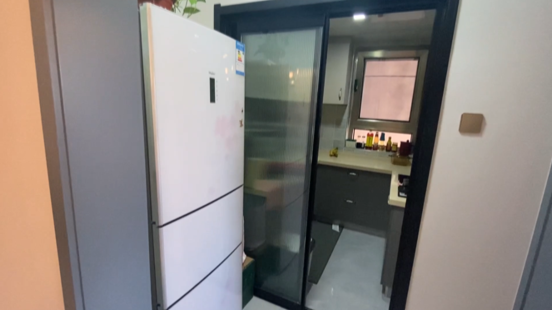 設(shè)計(jì)師將廚房的墻體延長(zhǎng)了5厘米,冰箱外移到過(guò)道區(qū)域,這樣,廚房里打造一組U字形的整體櫥柜,洗切炒動(dòng)線合理,儲(chǔ)物功能強(qiáng)大,方便好用。