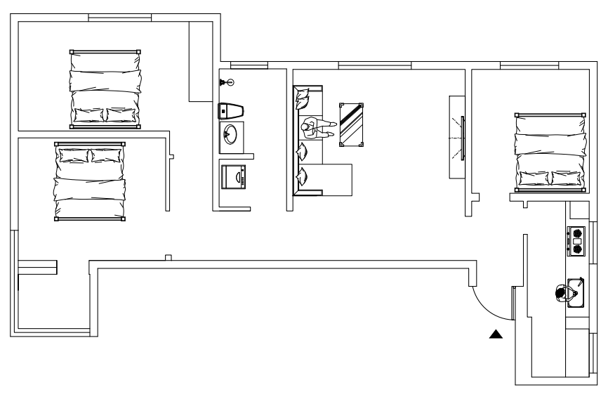 衛(wèi)生間有6平米,是里外間,里面的這4平米,集合了淋浴區(qū)、如廁區(qū)和洗漱三個(gè)功能,并沒有進(jìn)行干濕分區(qū)。外面的2平米只擺放了洗衣機(jī),非常浪費(fèi)。李女士希望通過這次改造,衛(wèi)生間不僅要?jiǎng)泳€合理、實(shí)現(xiàn)干濕分區(qū),而且淋浴的空間也要夠大,為的就是將來給第三代洗澡更為方便。