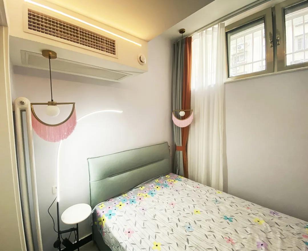 設(shè)計(jì)師將這間臥室重新調(diào)整,一整面的通頂衣帽柜滿足了臥室的儲(chǔ)物需求,而梳妝臺(tái)也是必不可少。