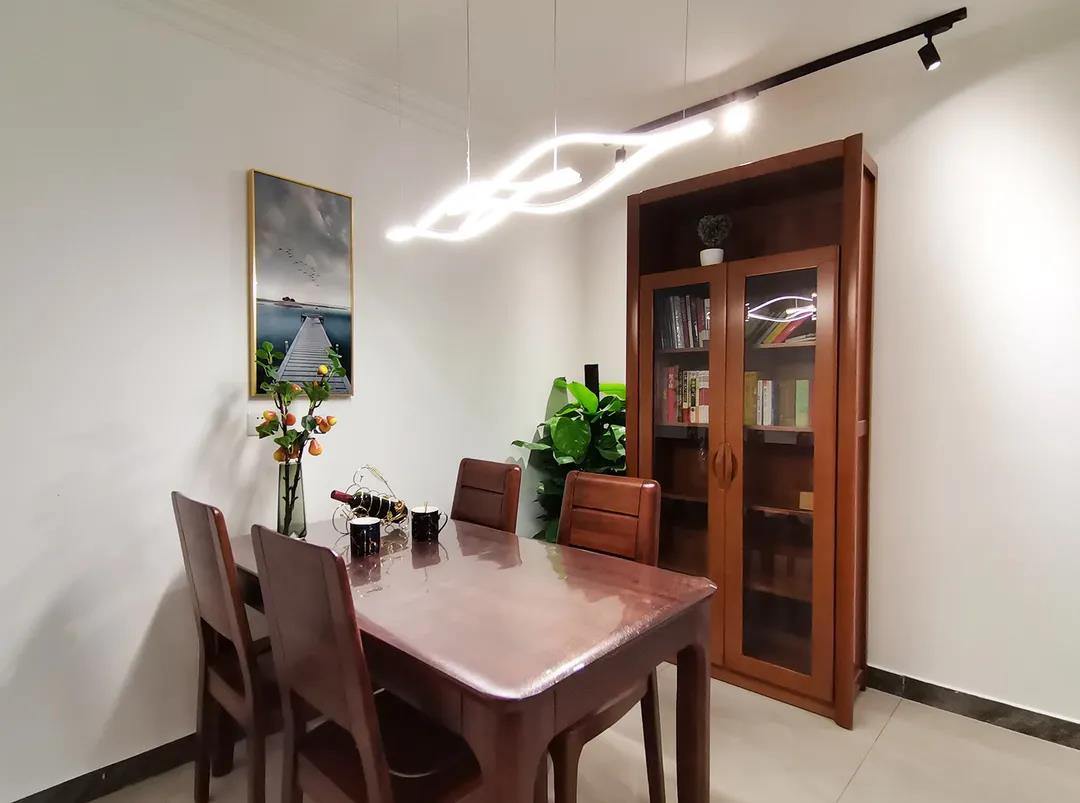 廚房空間足夠大,雙一字型櫥柜,操作方便,儲物充足,設計師貼心的根據(jù)馮女士身高,將廚房臺面高度設計為82公分高,使日常操作更舒適。隱藏式的柜體摳手,不僅美觀,也避免了磕碰,節(jié)省過道空間。
