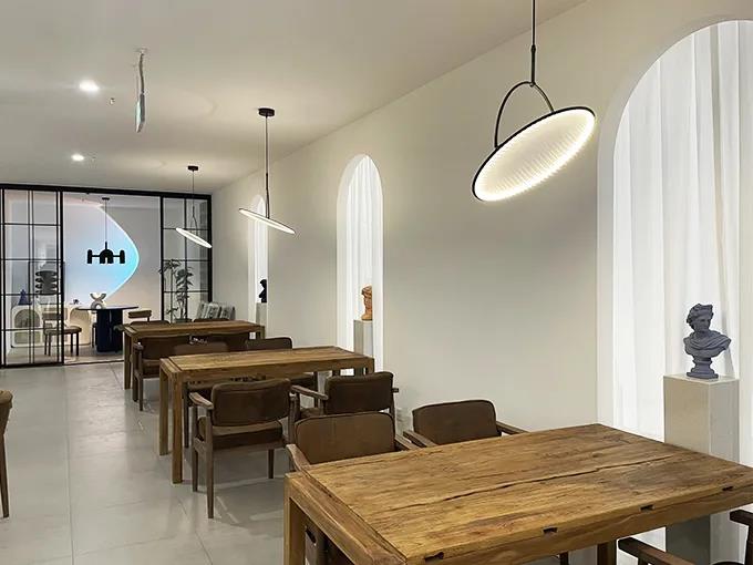 另外,還打造了一處私密的洽談空間,這里應(yīng)用到家庭空間可以當(dāng)做餐區(qū)。