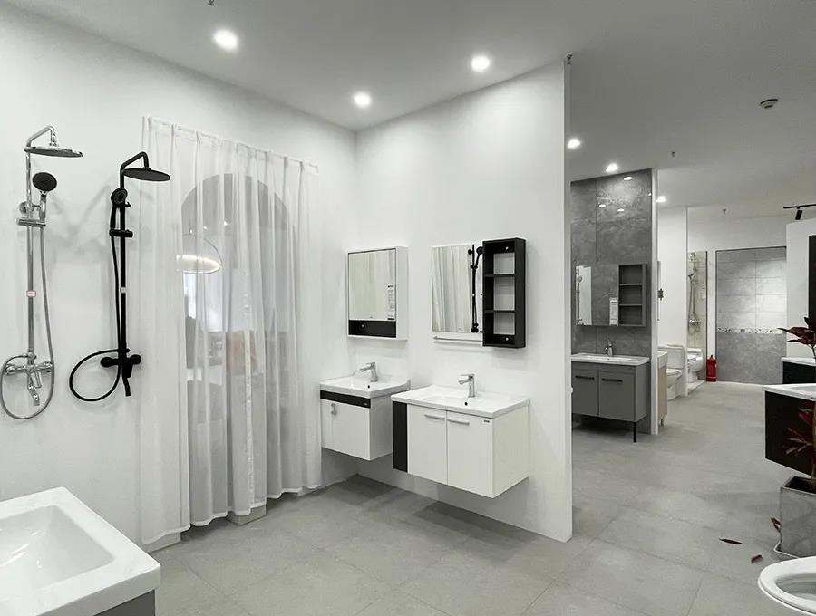 潔具區(qū)域也入駐了新的品牌,更多的款式,并且加3000元,可將衛(wèi)生間標配的成品浴室柜升級成定制浴室柜。