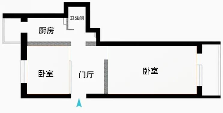 案例二:這套房子建筑面積55平米,是兩室一廳一廚一衛(wèi)的格局,未來(lái)要滿足三代四口人居住需求,同時(shí)還要開放式的大廚房,衛(wèi)生間也要干濕分離,還要給孩子留出活動(dòng)學(xué)習(xí)的空間。