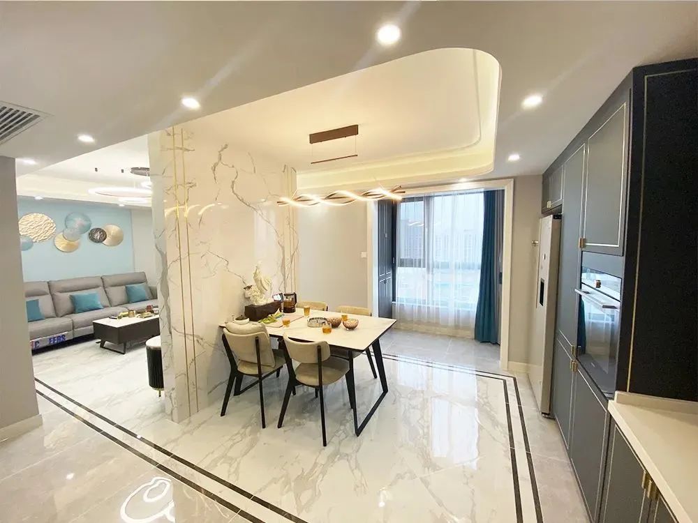 設(shè)計(jì)師王維將廚房移出,改為開放式,餐廚一體化空間。衛(wèi)生間空間也擴(kuò)大了,更是實(shí)現(xiàn)了四分離。將原來(lái)大臥室一分為二,一間作為臥室,另一間作為會(huì)客區(qū)同時(shí)還兼具客臥的功能。
