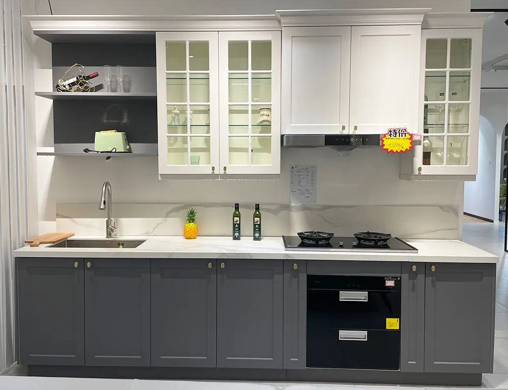 如果您家廚房是狹長(zhǎng)型,且沒有連接陽(yáng)臺(tái)的戶型,L形櫥柜再合適不過了。這套櫥柜,除了展示套餐里配套的柜體、門板、五金外,還為廚房提供了更多的個(gè)性化參考。
