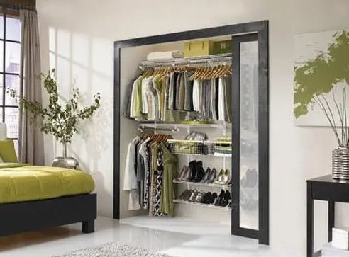 獨立式衣帽間對于面積要求較高,一般是要有獨立的一個房間來實現(xiàn)。優(yōu)點是儲存空間完整,并能提供充裕的更衣空間,但是要求房間面積不能小于6平米。