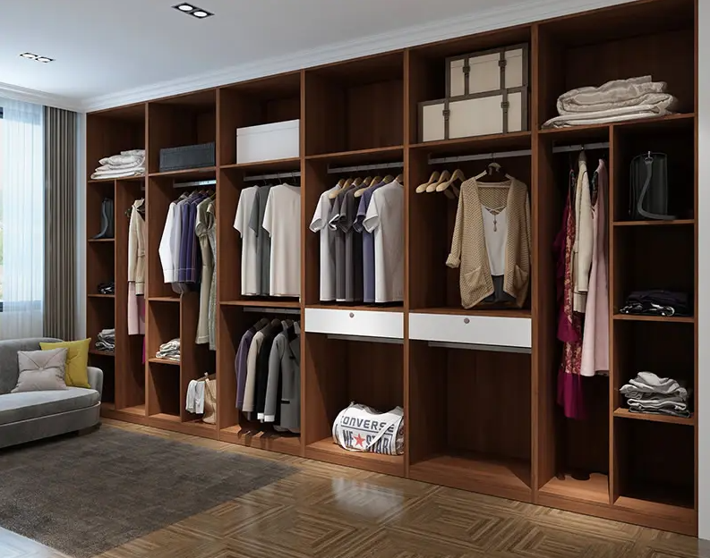 除了設(shè)計師的合理規(guī)劃外,想擁有一個好看又耐用的衣帽間,少不了五金配件和板材的選擇。五金配件特別能體現(xiàn)出一個衣帽間的品質(zhì),比如合頁、拉桿等。定制衣帽間由于會使用大量板材,對板材的品質(zhì)及環(huán)保系數(shù)要求也會非常高。潤元定制家具采用的板材都是歐洲原裝進口愛格板,環(huán)保頂級F****級。