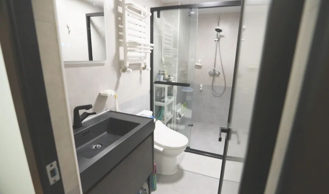 設(shè)計(jì)師根據(jù)使用的頻率和動(dòng)線,對(duì)2個(gè)衛(wèi)生間進(jìn)行了整體分區(qū),靠近客廳的這個(gè)衛(wèi)生間作為公共衛(wèi)生間,供一家人使用,主臥房間里的衛(wèi)生間則單獨(dú)提供給夫妻倆來使用。2個(gè)衛(wèi)生間都是合理規(guī)劃出了干區(qū)和濕區(qū),如廁、淋浴、洗漱功能齊全。