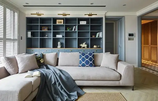 除了電視柜可以滿足部分客廳收納外,沙發(fā)邊柜也是不錯(cuò)的選擇,如果是面積比較小,60平米以內(nèi)的房子,那么可以在沙發(fā)上面,做一個(gè)15公分的小隔板,既美觀也可擺放小物件。如果房子面積比較大,則可以利用整面沙發(fā)墻做通頂?shù)亩ㄖ乒瘢詽M足客廳儲(chǔ)物需求。