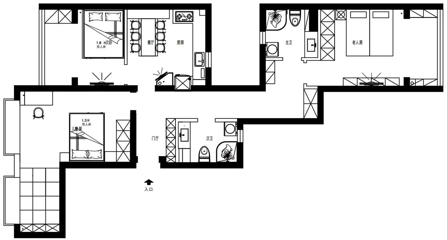 本期案例是我們的業(yè)主趙先生買的一套二手房,房子建筑面積120平米,使用面積80平米,是兩室一廳一廚兩衛(wèi)的格局,并且房子是典型的手槍式戶型。未來要滿足一家三代六口人的居住需求,目前房子存在著諸多問題,讓我們一起來看看設(shè)計(jì)師萬寶林是如何為業(yè)主規(guī)劃的。