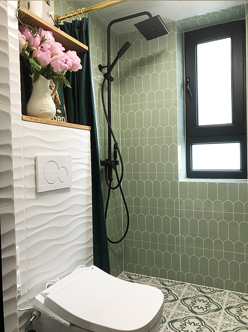衛(wèi)生間由原來1.9平米,擴(kuò)大到現(xiàn)在的2.2平米,擴(kuò)充出來的這部分空間,作為衛(wèi)生間的洗漱空間,讓衛(wèi)生間實現(xiàn)了干濕分離。S墻的設(shè)計,讓衛(wèi)生間和廚房空間,無論從平面還是立面上利用的都更加充分。壁掛馬桶,還解決了衛(wèi)生間高臺的問題。