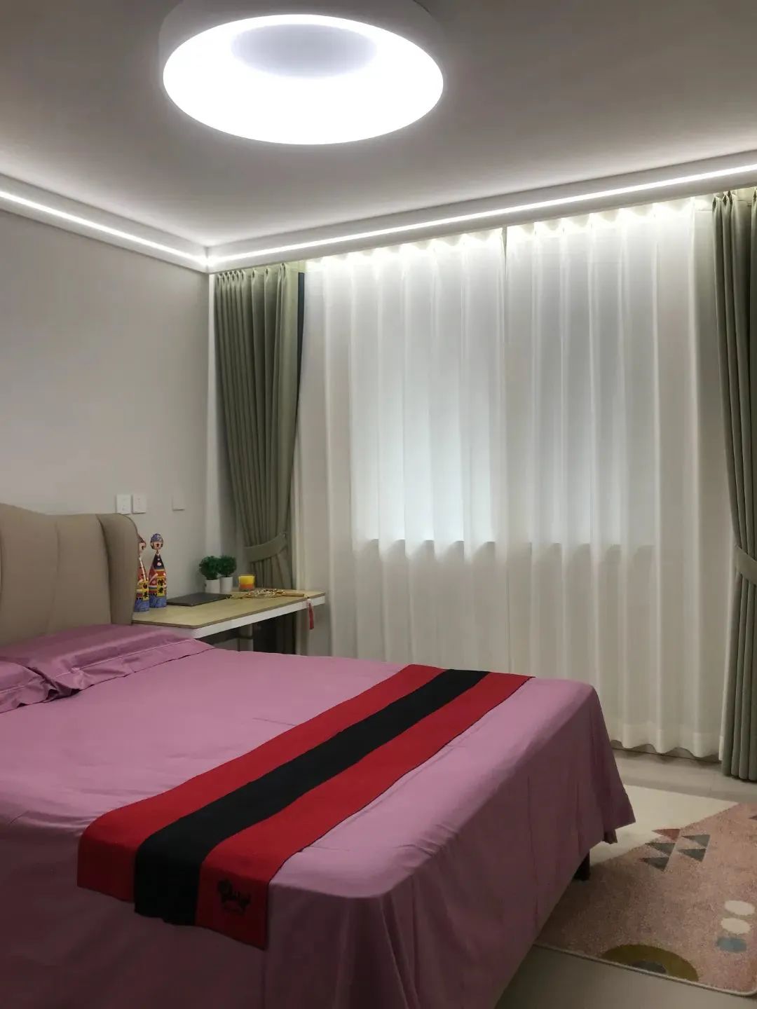 選擇是這種漸變式的這種燈光,它可以無限地去調(diào)節(jié),更亮,或者是更暗,去迎合它的一個舒適狀態(tài),窗簾里邊的燈帶,可以調(diào)的很柔和,完全是不刺眼。