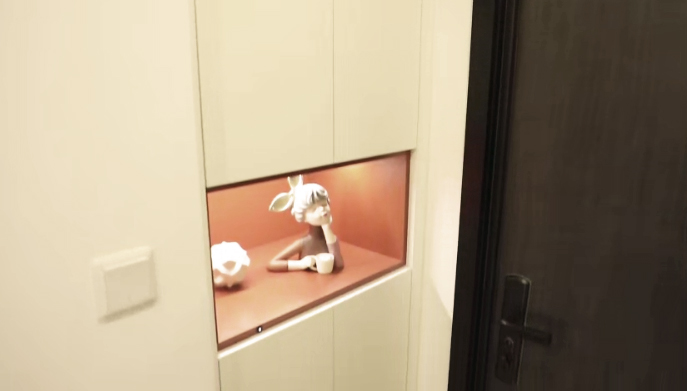 設(shè)計(jì)師封堵了廚房門,并向里推了40厘米,借了廚房的空間給門廳做了鞋柜,頂面利用筒燈來提亮整個(gè)空間,門廳儲(chǔ)物充足,采光充分。