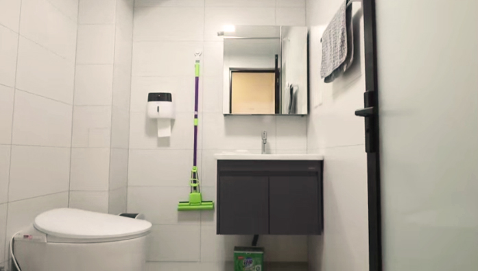 設(shè)計(jì)師將衛(wèi)生間門移動(dòng)了80厘米,與入戶門錯(cuò)開,衛(wèi)生間里面的布局也重新規(guī)劃,水盆、馬桶、淋浴區(qū),使用更加方便。