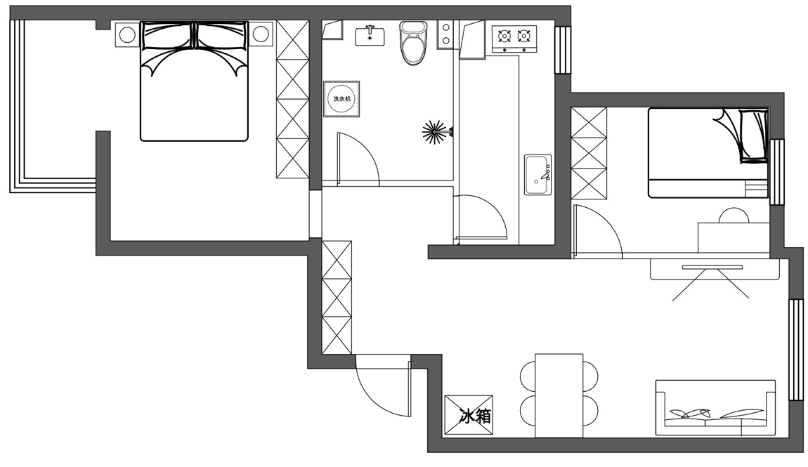 鄒先生家的這套房子,使用面積59平米,兩室一廳一廚一衛(wèi),未來鄒先生一家四口生活在這里。由于兩個(gè)孩子越來越大,家里原來的布局已經(jīng)無法滿足生活需求,所以必須的改。